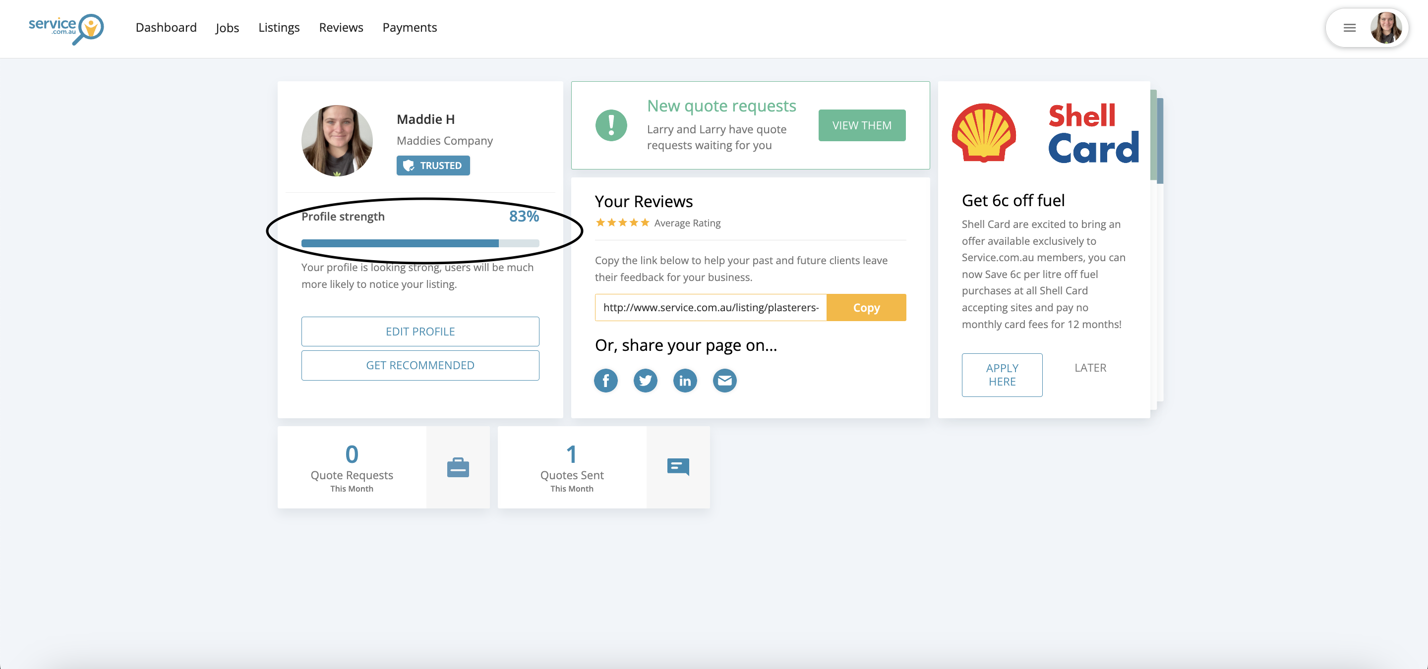 You can then return to your Dashboard or listing to check whether your profile strength percentage has improved.