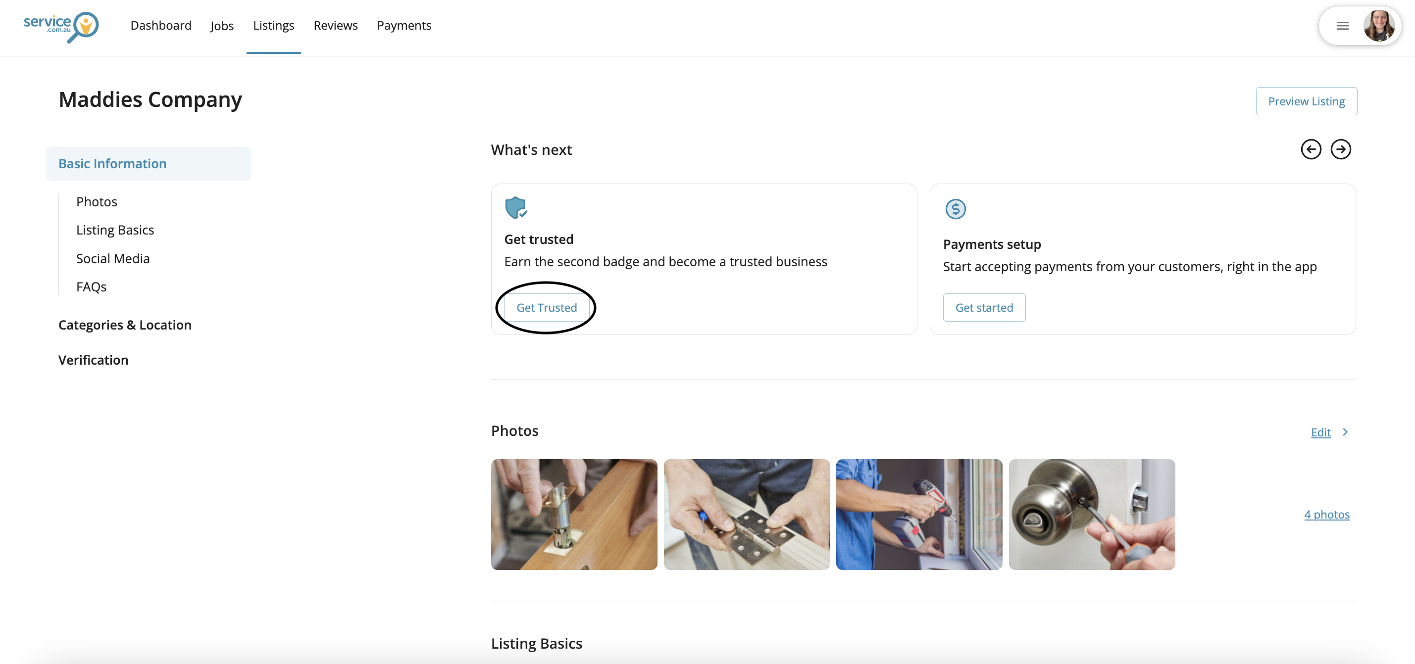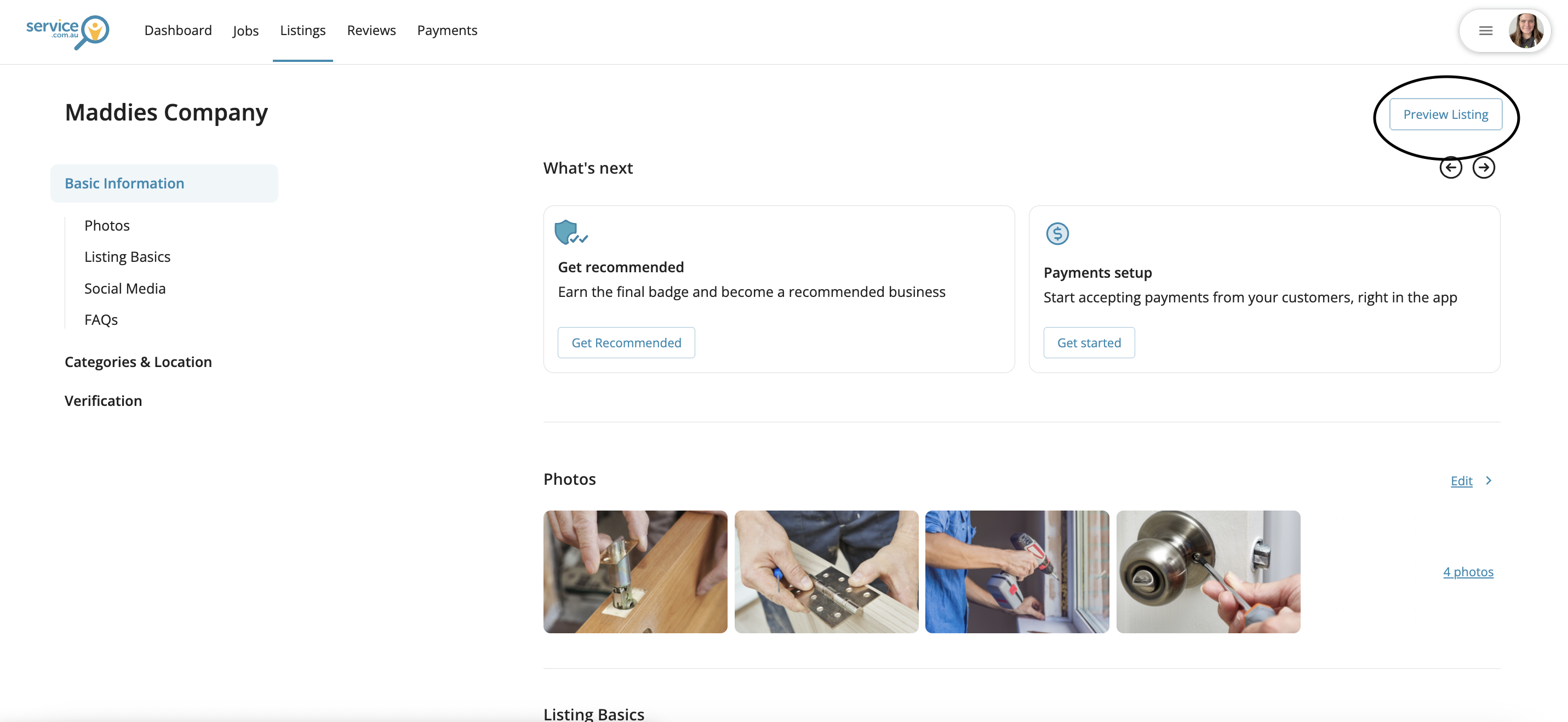 Click on Preview Listing to check how your profile appears to homeowners and make sure everything looks professional.
