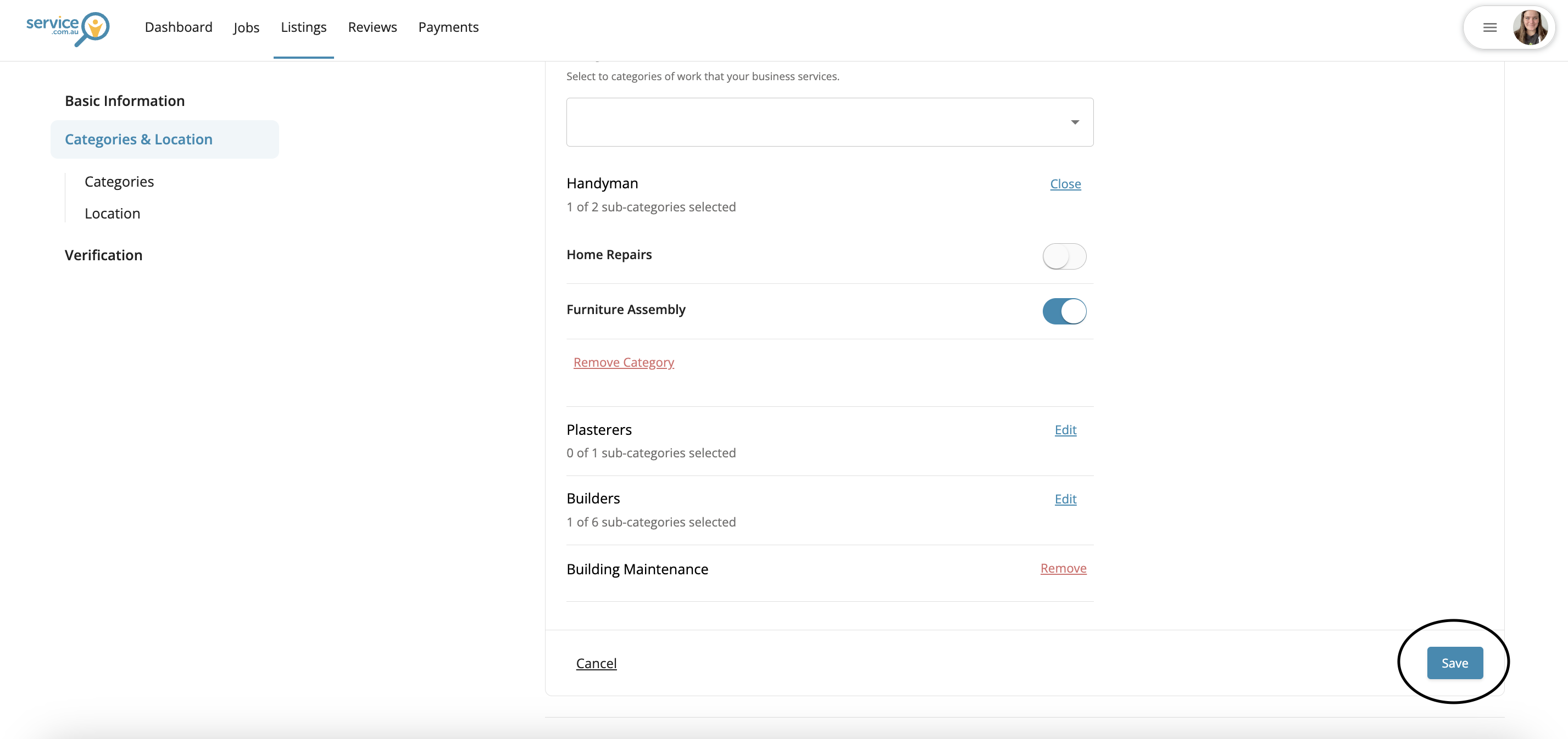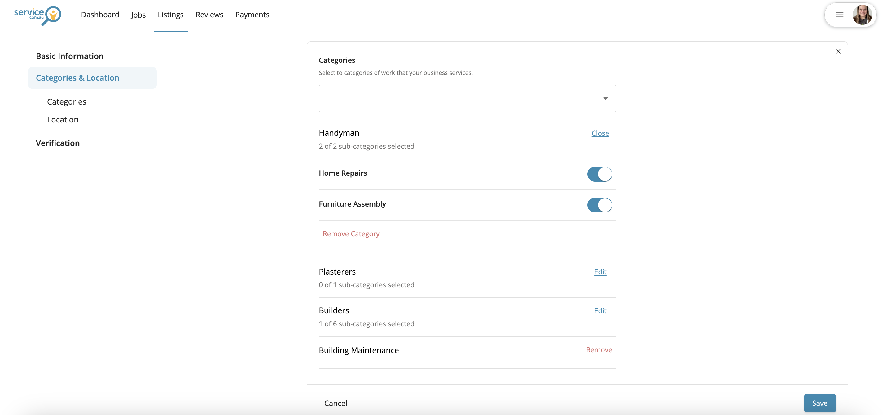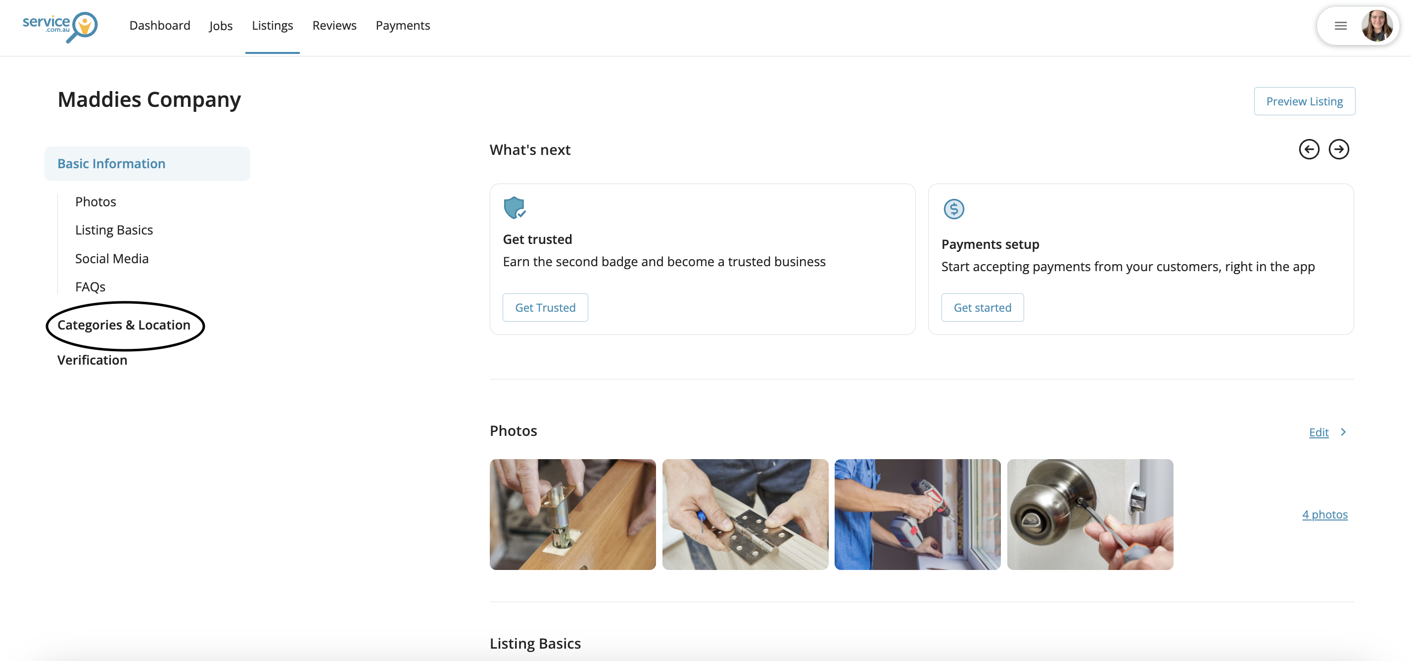 Use your lead settings to control which jobs match your business. You can update your service categories, subcategories, location, and travel distance from your listing.