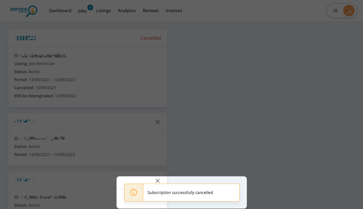 If you want to delete your account and remove your business from our system completely, email support at support@service.com.au.