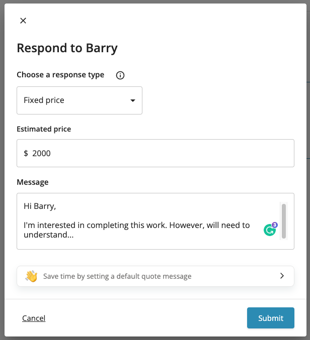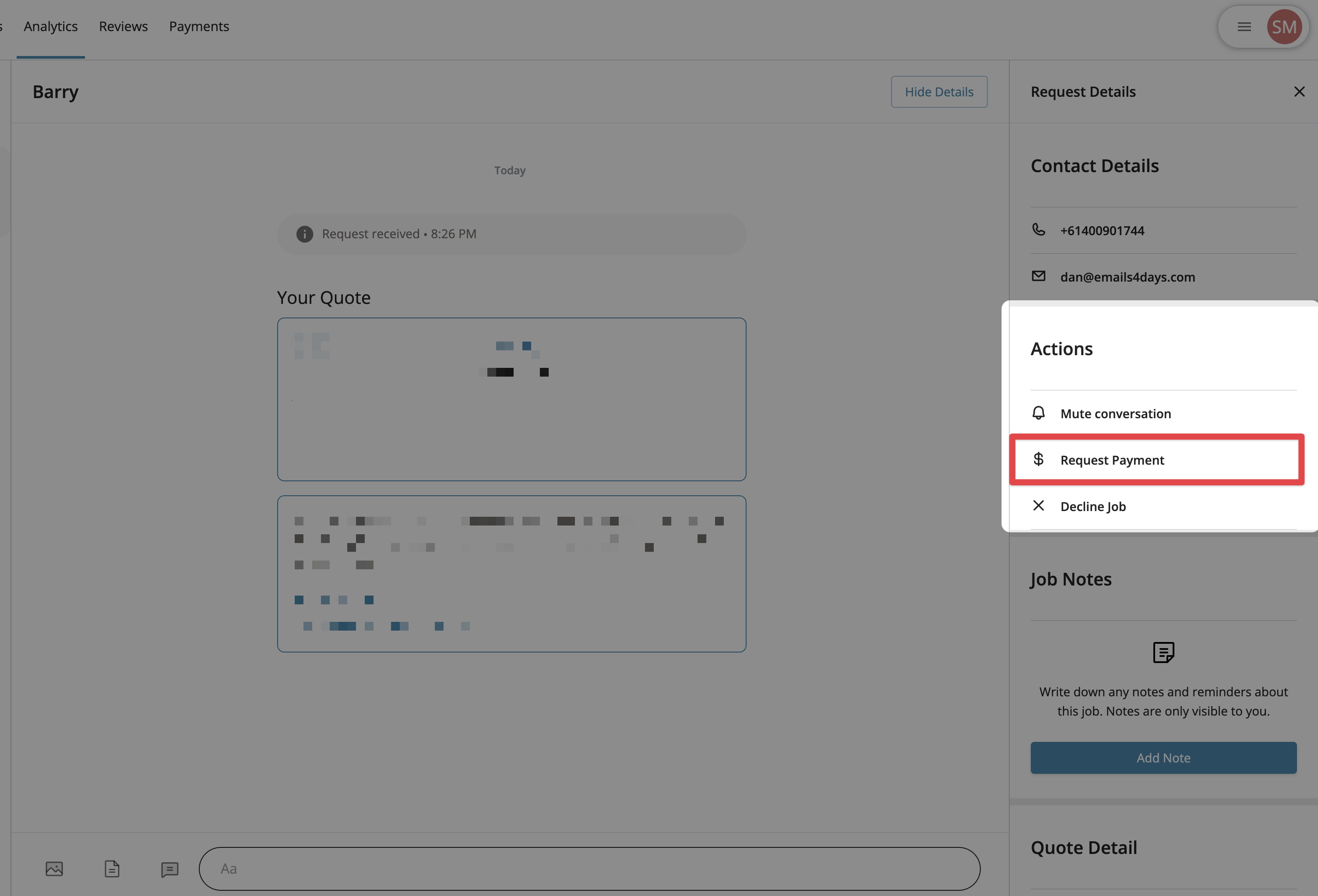 Open the job you want to request payment for. If you have not responded yet, you will need to submit a quote first.