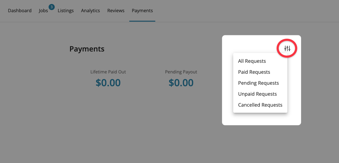 View your list of payment requests and your payment summary. You can also filter the list using the Filter options in the top right corner.