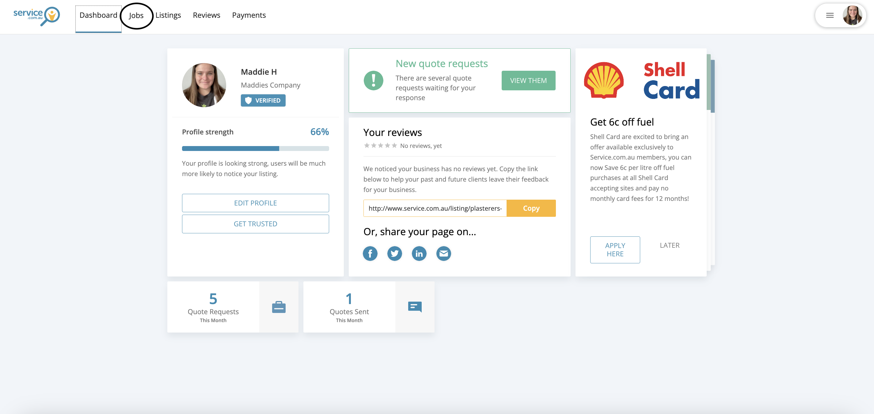 Go to Jobs in your account to view homeowner enquiries and available leads.