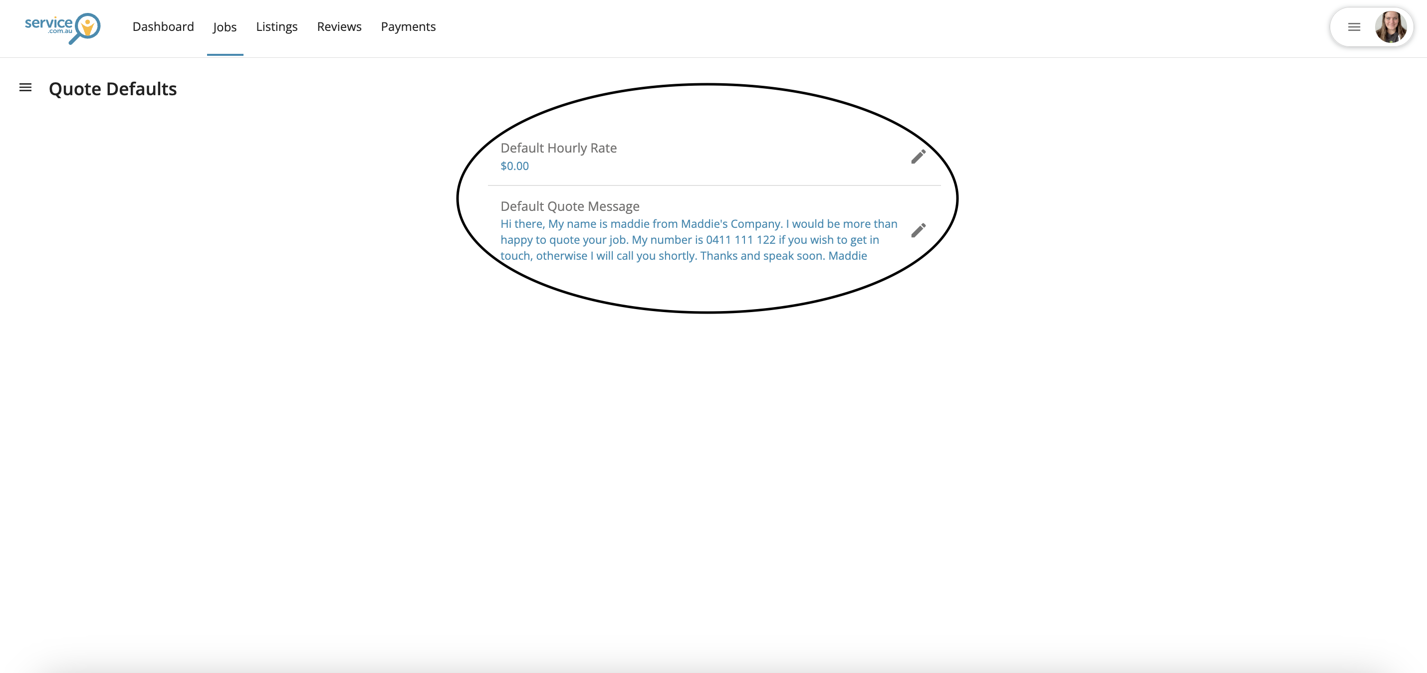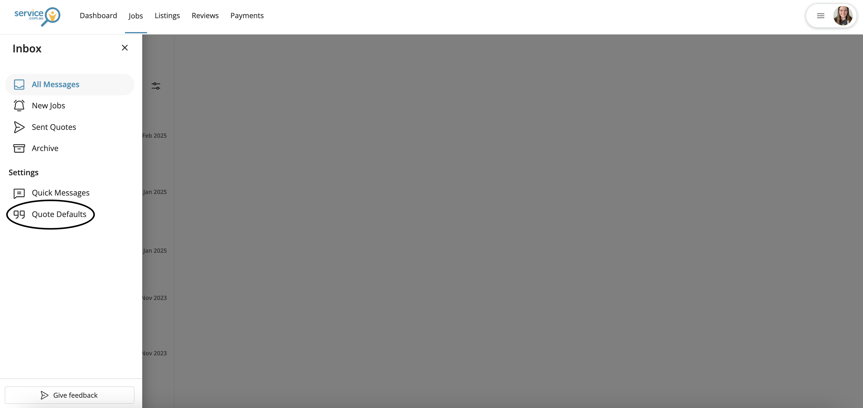 Enter your preferred quote message and save it so it can be used when you respond to new jobs.